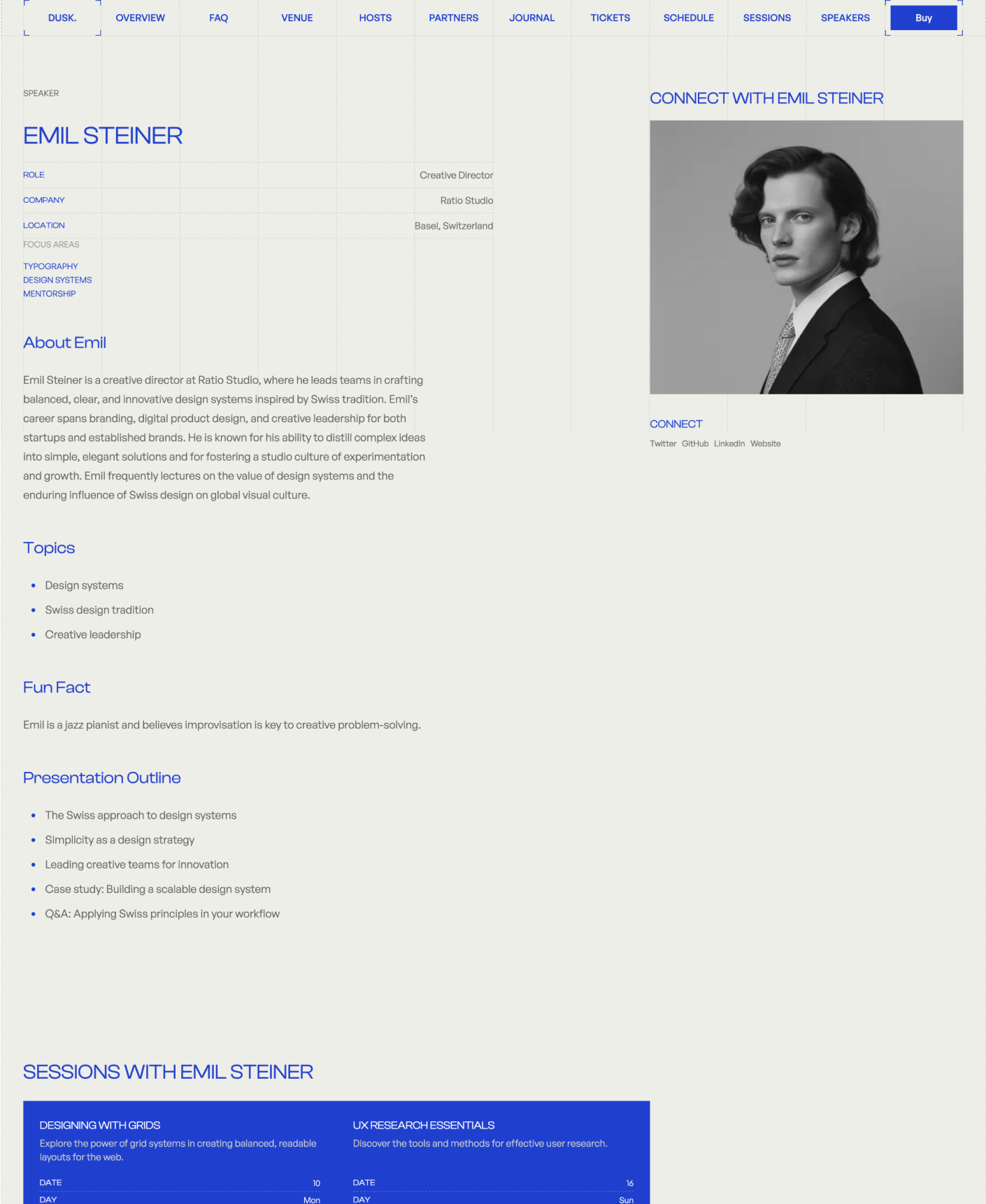 Dusk uses a clean grid, clear typography, and calm and blue accent colors to create order and focus. The layout feels steady and readable, built to guide attention without noise. Every section is consistent, open, and easy to follow.